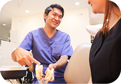 安心感のある治療を実践するために、お口の状態や治療法について説明する際は、できるだけ一般的な言葉を使って、丁寧にお話しするように心掛けています。