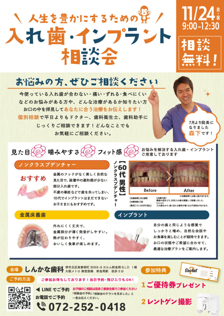 【入れ歯・インプラント相談会 開催!】|堺市北区の歯医者|きたはなだますだ歯科